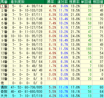 馬番の奇数・偶数も、意外な傾向を示すことがあります。