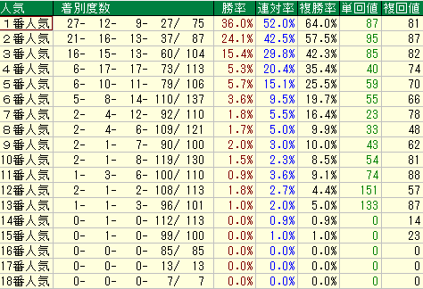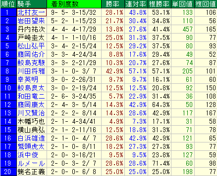 - 平均データ: 複勝率が15.8%~19.1%と、やや成績が落ちる傾向があります。