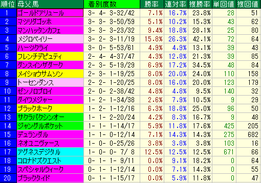 - 大外枠の種牡馬データ: