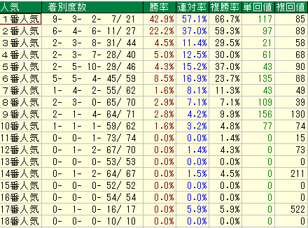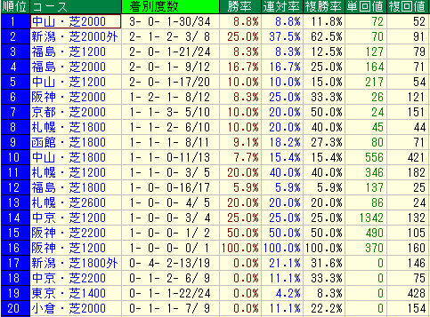 - データ: 複勝率 34.5% / 単勝回収値 48 / 複勝回収値 84