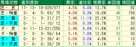 - 「道悪(重馬場)」でのバイアス