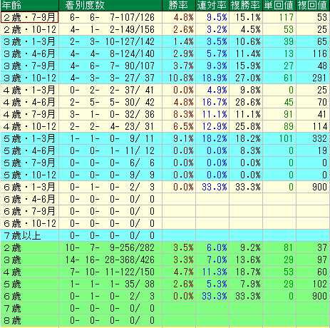 - 明け3戦目から複勝率が 23.8% へと急上昇。ここでようやく本来の走りができるようになります。