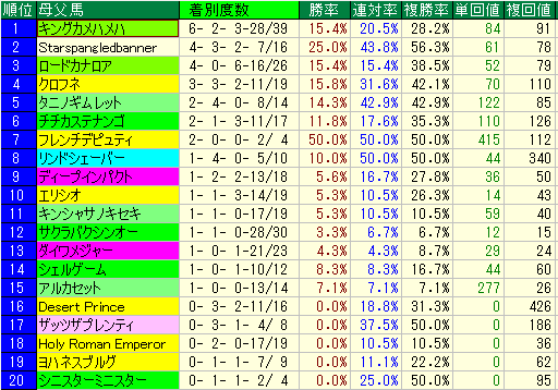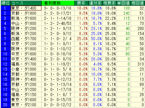 - データ: 複勝率 23.3% / 複勝回収値 180