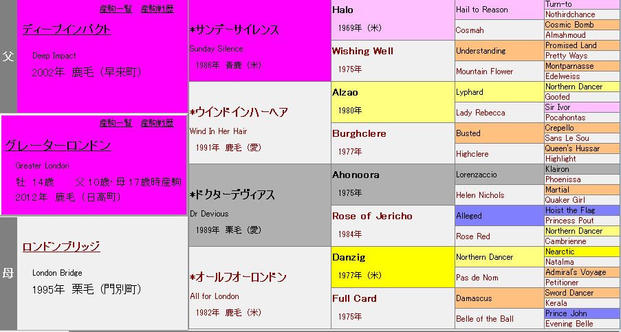 • 母: ロンドンブリッジ(母父:ドクターデヴィアス)