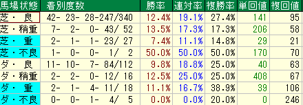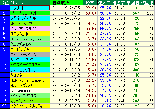 • 種牡馬の大外データ:複勝率37.5% / 複回103
