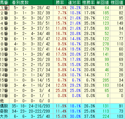 • 奇数番:【不利】(複勝率25.8% / 単回113 / 複回73)