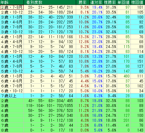 1. 年齢別パフォーマンスの変動:若駒の安定と古馬の覚醒