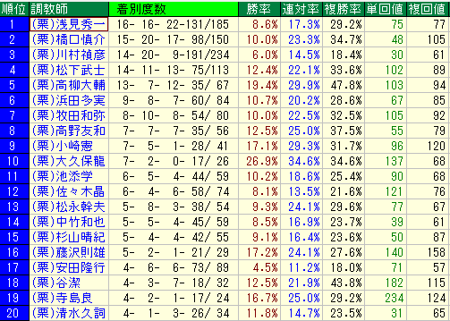 複勝率4割を超える高柳厩舎や谷厩舎。ここでは中穴でも軸としての信頼度は抜群です。