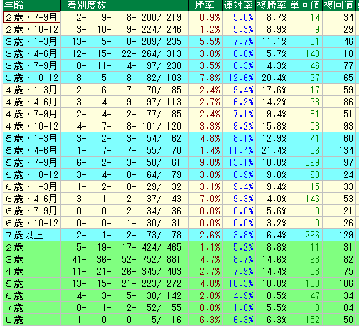 年齢別パフォーマンス分析:狙い目は「3歳春」と「5歳」