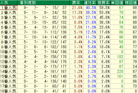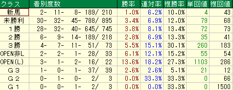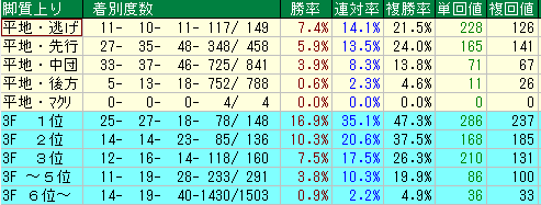 単複回収値30台。主流血統のキレ勝負では苦戦必至
