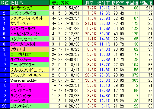 - コメント: ディープ同様、サンデー系主流種牡馬との相性が良くありません。期待値が極めて低いため、静観が妥当な条件です。