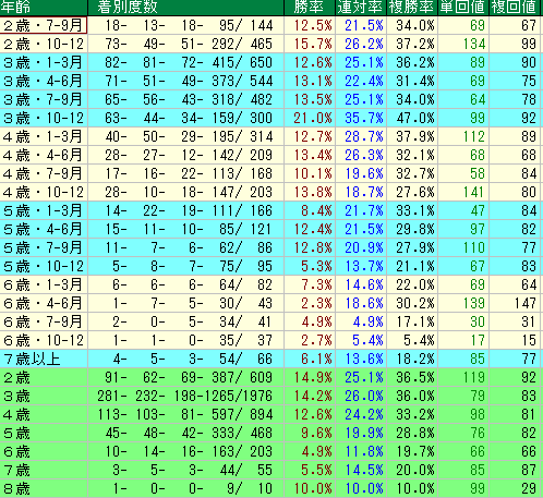 - 📈4歳馬も安定の強さ!ただし「5歳以降」は徐々にパフォーマンスが下降傾向に…📉