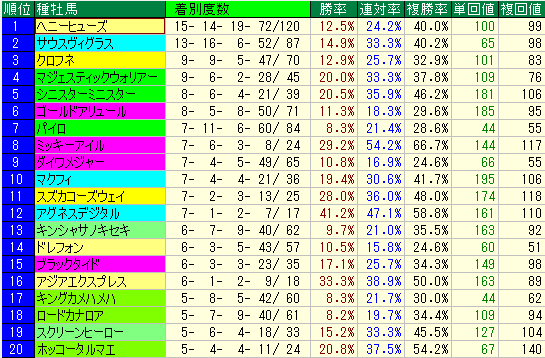 複勝率は3割前後ですが、単勝・複勝ともに回収率が跳ね上がる、一発逆転を狙えるランキングです。