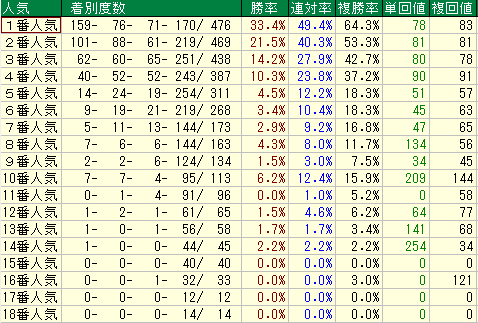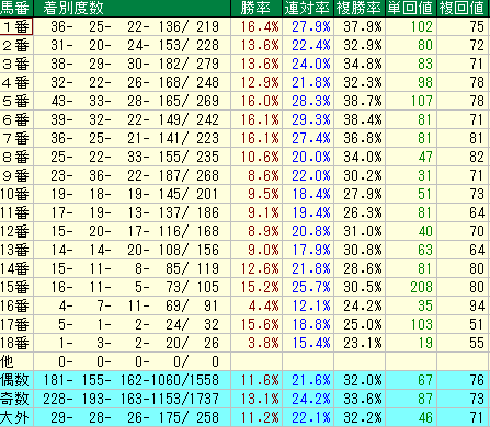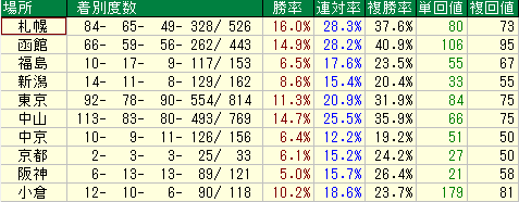 - **単勝回収値101%**と100%超え!複勝回収値67%とやや低下しますが、単勝での妙味は抜群です!