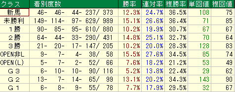 - 複勝率26.1%、単勝回収値41%、複勝回収値45%と、好走率・回収率ともに低調です。