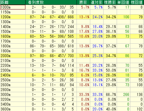 - コメント: 長距離G1などで騎乗機会が多い距離ですが、馬券的には妙味が薄い傾向にあります。