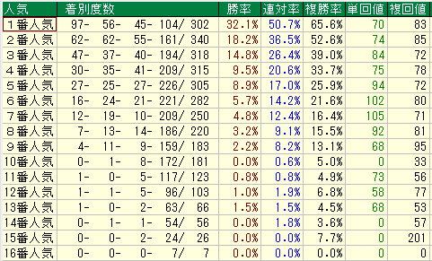 - 分析データ: 複勝率 32.0% / 単勝回収値 151