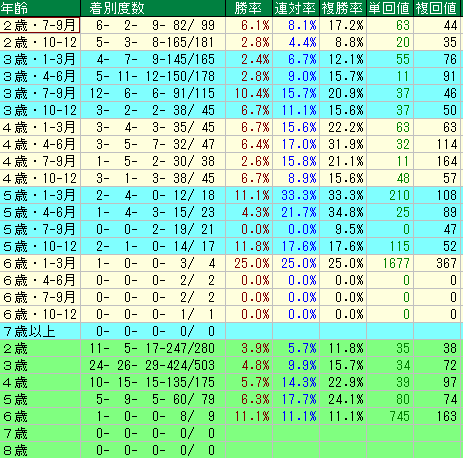 1.年齢・時期別パフォーマンス:狙い目は「4歳以降」の本格化!