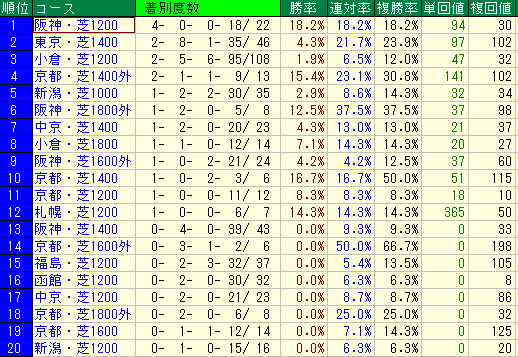 • 17番:複勝率 20.0%(平均 15.8%