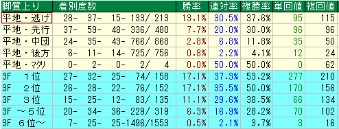 複勝率14.5%と低迷し、さらに単勝回収値26、複勝回収値52と壊滅的な数字です。同じスピードタイプ同士で、距離の融通や底力に欠けるケースが多く、人気になっていても疑ってかかるべき筆頭候補です。