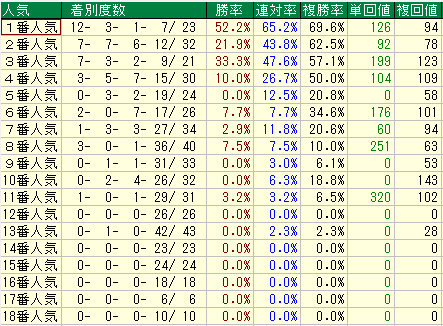 • 分析: 勝率 8.6% / 単勝回収値 134