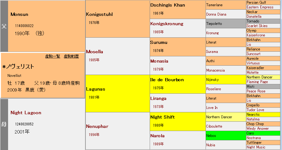 数値から導き出した、ノヴェリスト産駒の「状態」格付けです。