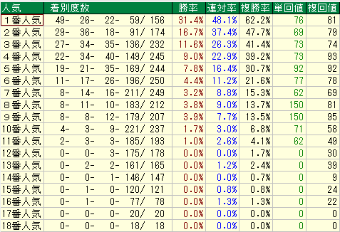 人気別成績を見ると、興味深い傾向が浮かび上がります。