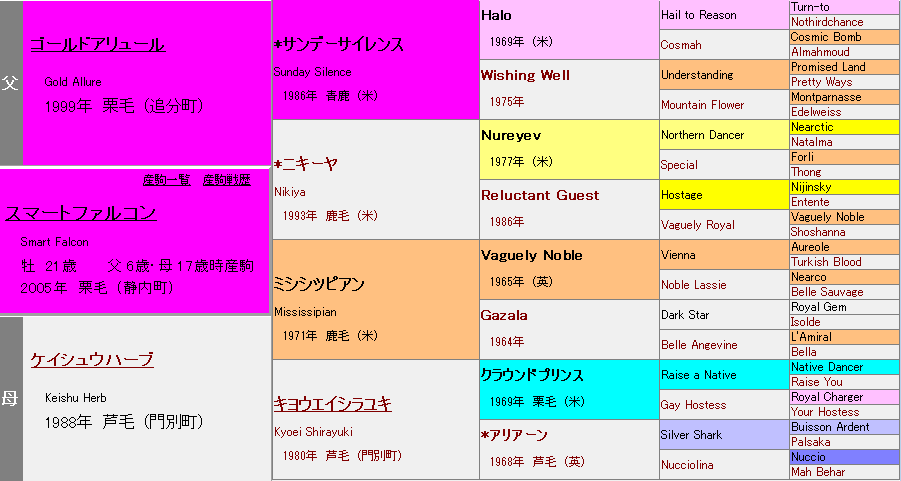 結論: スマートファルコン産駒は**「3歳夏に化け、4歳で完成し、5歳で燃え尽きる」**という非常にサイクルがはっきりした血統です。特に「3歳夏の単勝」を仕留められるかどうかが、あなたの年間収支を大きく左右することになるでしょう!