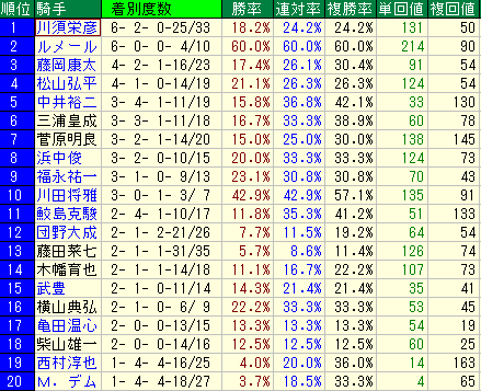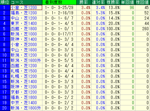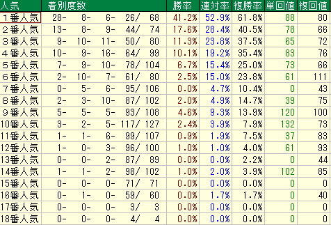 - 平均データ:複勝率22.2% / 複勝回収値68