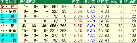 - 安定感抜群。軸馬としての信頼度が最も高い条件です。