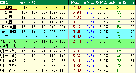1.出走間隔:狙い目は「中2週(3週)」と「半年以上の休み明け」!