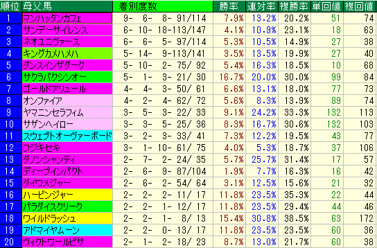 - 種牡馬データ:複勝率10.9% / 複勝回収値29