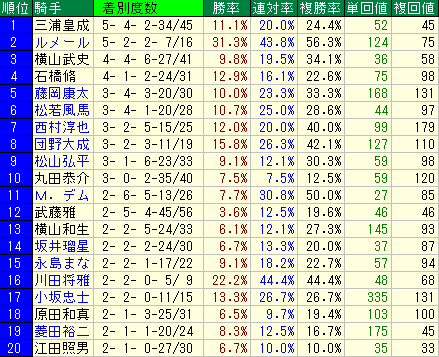 - 平均データ:複勝率22.2% / 複勝回収値68