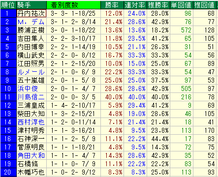 • 評価理由: 複勝回収値が 110 を超え、的中率も2割以上で安定。