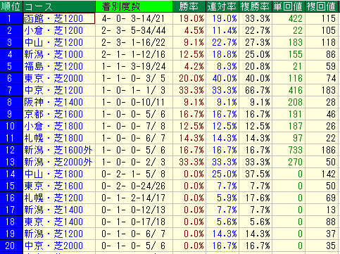 • 偶数番: 複勝率 18.3% / 複勝回収値 84