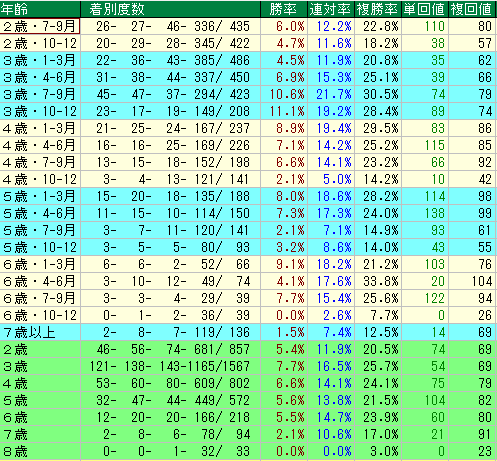 1.年齢・季節別パフォーマンス:3歳夏から始まる「丹内無双」!