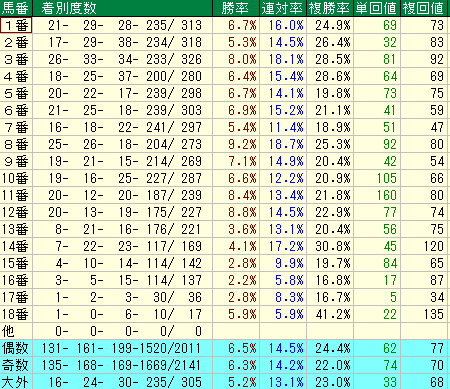 このゾーンでは、馬番によって得意不得意がはっきりと分かれる傾向にあります。