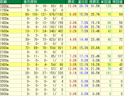 期待値が低く、どれだけ有力馬でも疑ってかかるべき距離です。