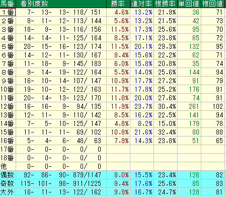 - 単勝回収値 225 / 複勝率 21.8%