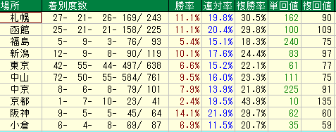 複勝率と回収率で見る「場所別」徹底考察