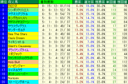 - 複勝率は低いが単勝回収率と複勝回収率が高い母父馬 ベスト3