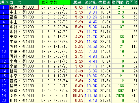 - 1.場所別:ダート戦で輝く舞台、沈む舞台はどこだ!?
