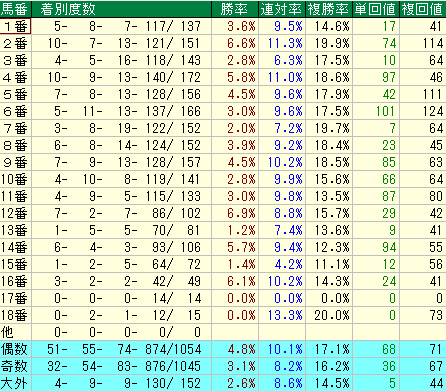 - 【有利な馬番】偶数番の方が奇数番よりも明確に有利。
