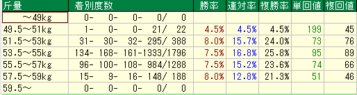 斤量が重くなるにつれ、パフォーマンスには明確な変化と「壁」が見て取れます。