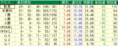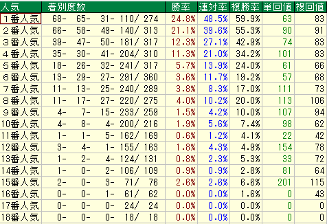 • 複勝率 41.8%、単勝回収値 326、複勝回収値 212