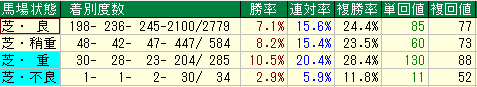 1.馬場状態が悪化するにつれての成績変化(芝)