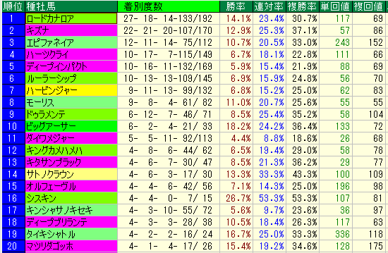 2. ハーツクライ(非根幹の単勝狙い) 複勝率22.8%とムラはありますが、単勝回収値は111をマーク。人気薄のハーツクライ産駒で、大外から一気に突き抜けるシーンが目に浮かびます。