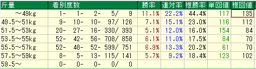 斤量別パフォーマンスの変動:軽量の衝撃と重量の逆襲