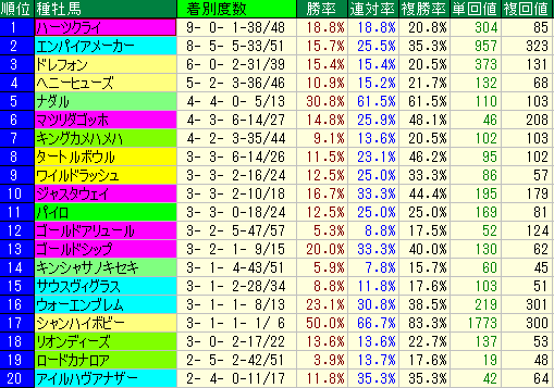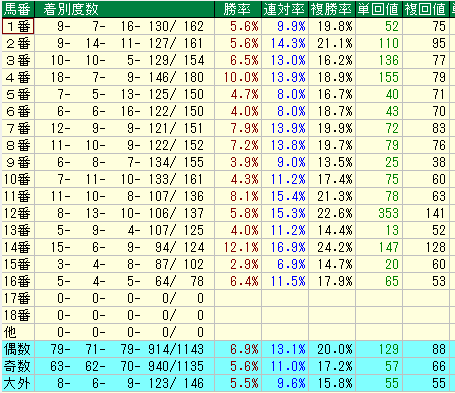 的中率は低いものの、特定の条件下で高配当を運んでくる「一撃必殺」のデータです。