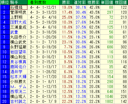 - 平均データ:複勝率22.2% / 複勝回収値68